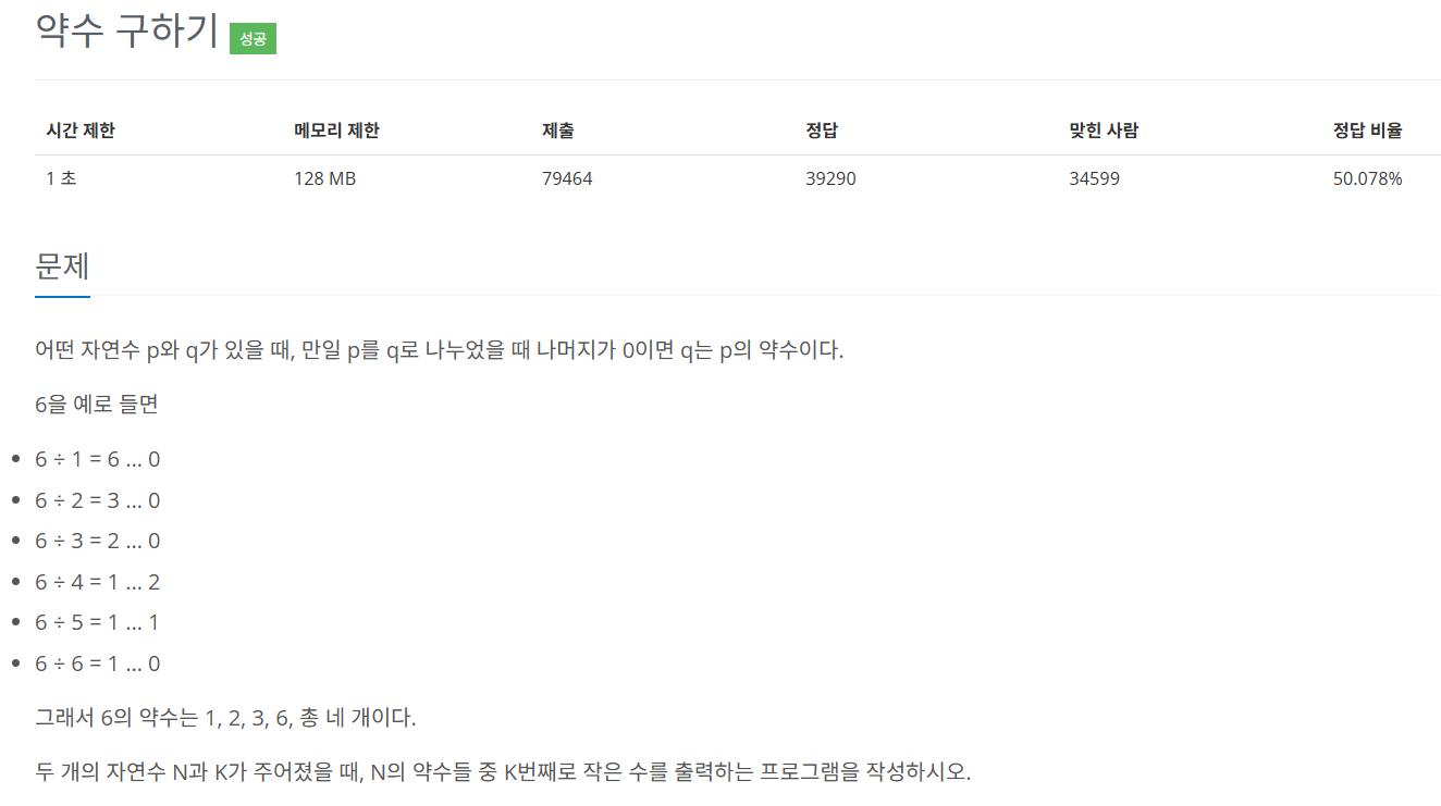 [JAVA] 백준2501: 약수 구하기 간만에 블로그 업데이트를 하기 위해 개쉬운 문제를 하나 들고 왔다.기존에 풀었던 문제들과 비교해도 난이도가 꽤 쉬운편에 속하는데, 왜인지 정답비율은 50% 정도 되는 문제이다.나처럼 1년 넘게 고작 개발자 따위 취업도 못하고 있는 허섭 쓰레기 백수도 풀었으니 모두가 풀 수 있다.못 풀겠다면 나보다 못한 인간이니 그만 이승의 괴로움을 멈추는 것을 추천한다.나도 조만간 뒤따라 갈테니 외롭진 않을 것이다.그니까 못풀면 나가죽으란 뜻이다 그대들을 부양해야할 미래의 우리 후손들을 위해. 풀이시간복잡도 문제에 적응하기 위한 BufferedReader랑입력을 하나씩 받기 위한 StringTokenizer를 사용해서 정수 N과 K를 입력받는다. 1부터 N 까지 숫자를 하나씩 확인하면서 N을 나누어 떨어지게 하는 숫자.. 코딩테스트/알고리즘..을 하고 싶었던 2024.11.25