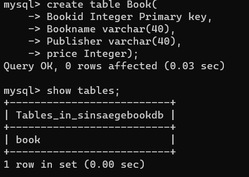 Bookid 라는 항목은 integer값으로 primary key로 설정하겠다.